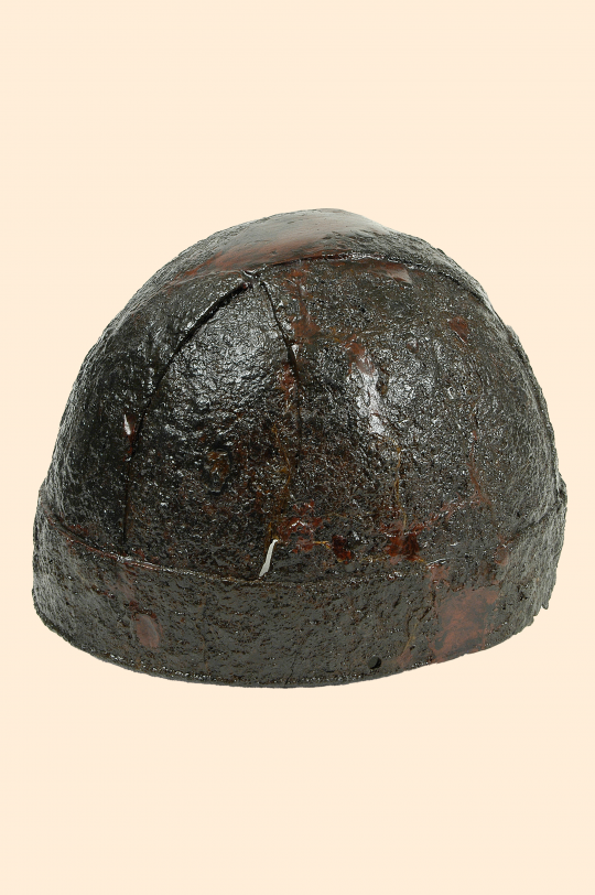 De helm is waarschijnlijk gemaakt voor een soldaat met een hoge status. Het hoofddeksel is aangepast aan de vorm van zijn hoofd, een teken van hoe opmerkelijk goed men in die tijd met plaatijzer kon omgaan.