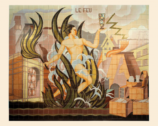 Deze compositie van keramiek wordt bewaard in Keramis, een museum in La Louvière, naast de compositie ‘La Terre’ (coll. van de FWB). Het diptiek is van de hand van keramist Raymond Henri Chevallier en sierde oorspronkelijk de inkomhal van het administratieve gebouw van de manufactuur in La Louvière, ingehuldigd op 14 juni 1948.