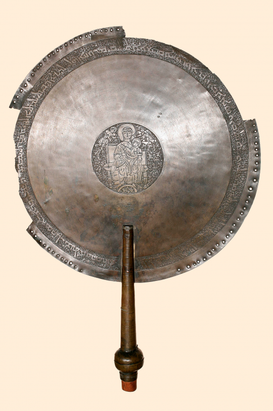Dit voorwerp was oorspronkelijk een paar met de waaier in het Louvre. Het werd gebruikt om koelte toe te waaien naar het altaar tijdens de christelijke dienst in de oosterse kerk. Naast de boeiende geschiedenis hoort bij dit voorwerp ook een christelijke decoratie met islamitische elementen, die verwijst naar de rijkelijke culturele ontmoetingen in die tijd.