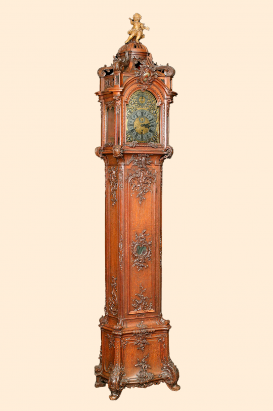 Met haar elegante vormen en geraffineerde versieringen is deze klok een mooi voorbeeld van het respect voor de klassieke traditie en de invloeden van de rococo. De binnenversiering is fijn gegraveerd en put uit het repertoire van de renaissance. De klok is een van de pareltjes van het 18e-eeuwse Luikse meubilair.