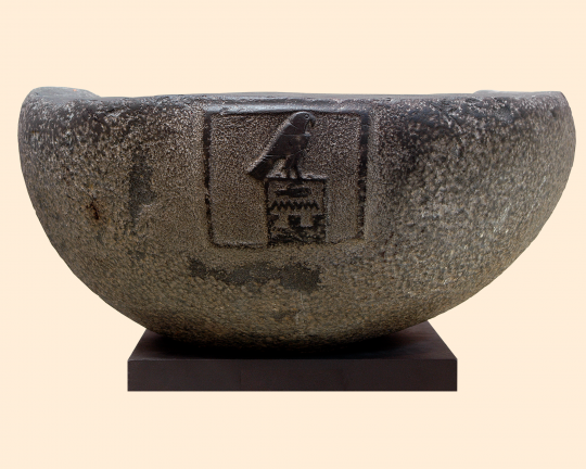 Dit bekken, waarin de priester zich reinigde voor het begrafenisritueel, is een van de grootste stenen bekkens uit de Egyptische geschiedenis. Egyptoloog Émile Amélineau ontdekte het in 1895-1896 in het graf van koning Den, aan wie het ook wordt toegeschreven. Dit bekken is een uitzonderlijke getuige uit de periode van de eerste koningen van Egypte.